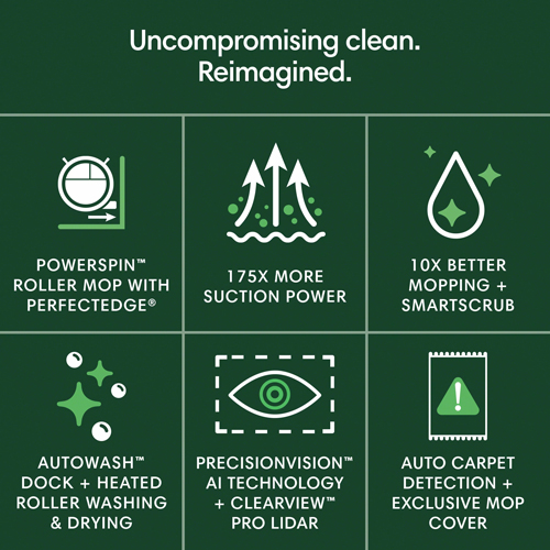 Eliminates Messes 10X Better - Tackles stubborn stains with heated mopping and the PowerSpin Roller Mop, spinning at 200 RPMs and applying consistent pressure for spotless, streak-free mopping, Turn on SmartScrub for extra deep scrubbing.