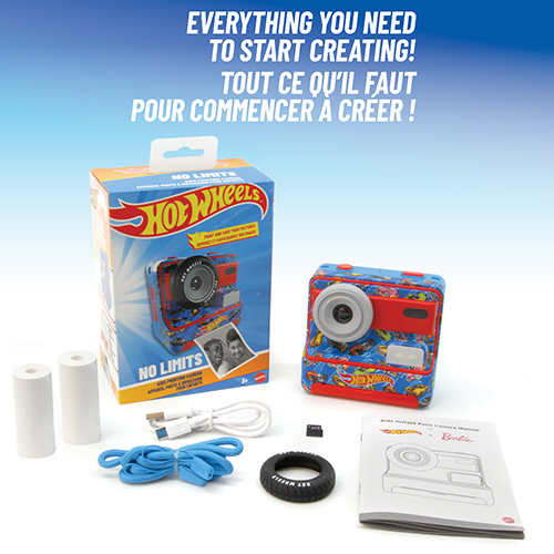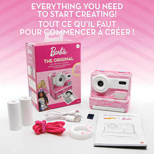 This bundle includes: x1 Barbie The Original - 18MP Instant Print Camera with 1080p Video and 2.4" Full View Screen (BBORIGINAL), x1 Hot Wheels No Limits - 18MP Instant Print Camera with 1080p Video and 2.4" Full View Screen (HWNOLIMITS), and x2 Barbie and Hot Wheels Instant Print Refill Pack 4 Photo Paper Rolls (BH4REFILL).